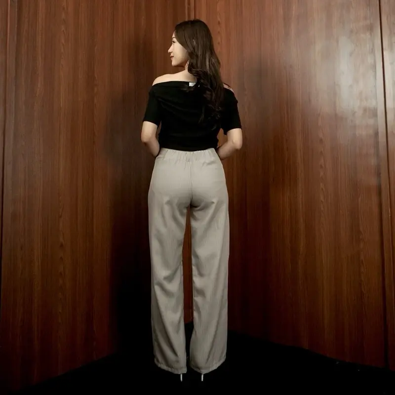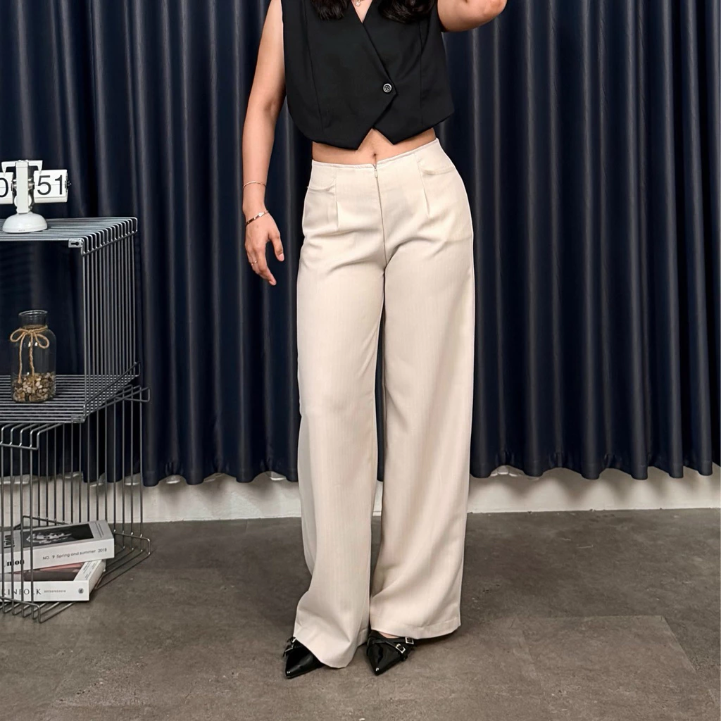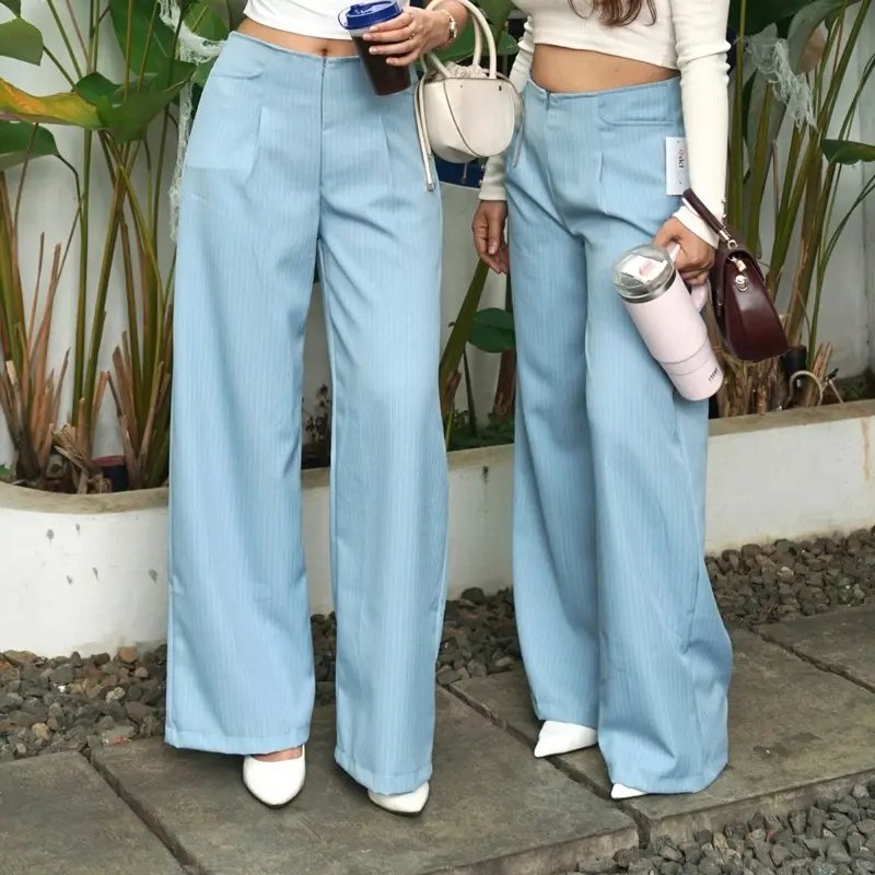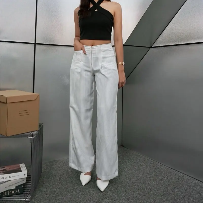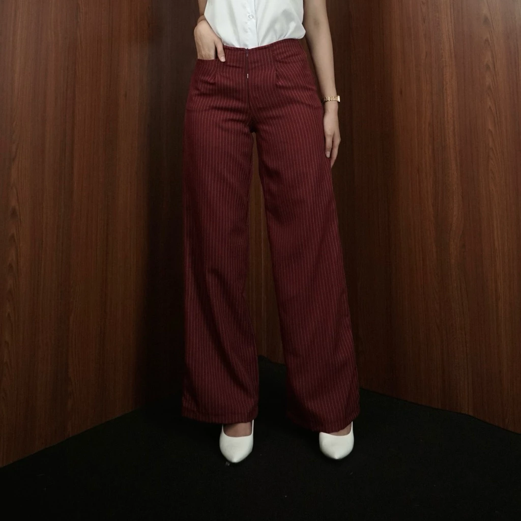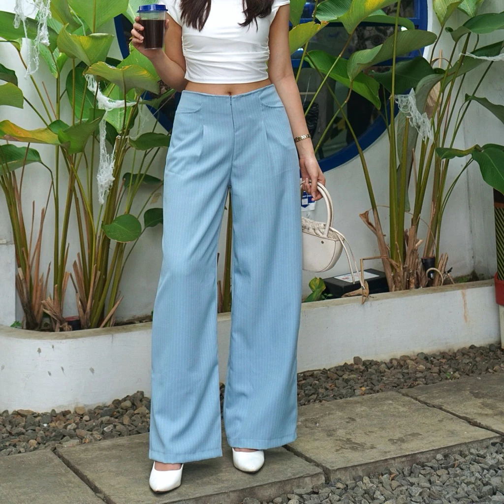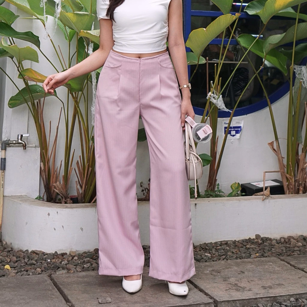 elana Casual Tipis Panjang Wanita Kantor Kuliah Motif Garis
